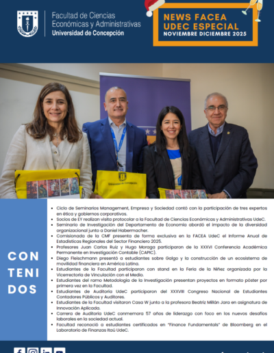 NEWS NEWS Revise aquí la recopilación mensual de las noticias mas importantes de la Facultad de Ciencias Económicas y Administrativas de la Universidad de Concepción. #FACEA, #UDEC, #NOTICIAS, #NEWS News Facea Nº27 Noviembre-Diciembre2025 enero 13, 2026 Leer más » News Facea Nº26 Septiembre-Octubre2025 septiembre 12, 2025 Leer más » News Facea Nº25 Agosto 2025 agosto 12, 2025 Leer más » News Facea Nº24 Junio-Julio 2025 julio 30, 2025 Leer más » News Facea Nº23 Abril 2025 abril 15, 2025 Leer más » News Facea Nº22 Marzo 2025 marzo 15, 2025 Leer más » News Facea Nº21 Diciembre 2024 – Enero 2025 enero 31, 2025 Leer más » News Facea Nº20 Noviembre 2024 diciembre 22, 2024 Leer más » News Facea Nº19 Octubre 2024 noviembre 22, 2024 Leer más » News Facea Nº18 Septiembre 2024 octubre 22, 2024 Leer más » News Facea Nº17 Jul-Ago 2024 septiembre 4, 2024 Leer más » News Facea Nº16 Junio 2024 julio 10, 2024 Leer más » « Anterior Page1 Page2 Page3 Siguiente »