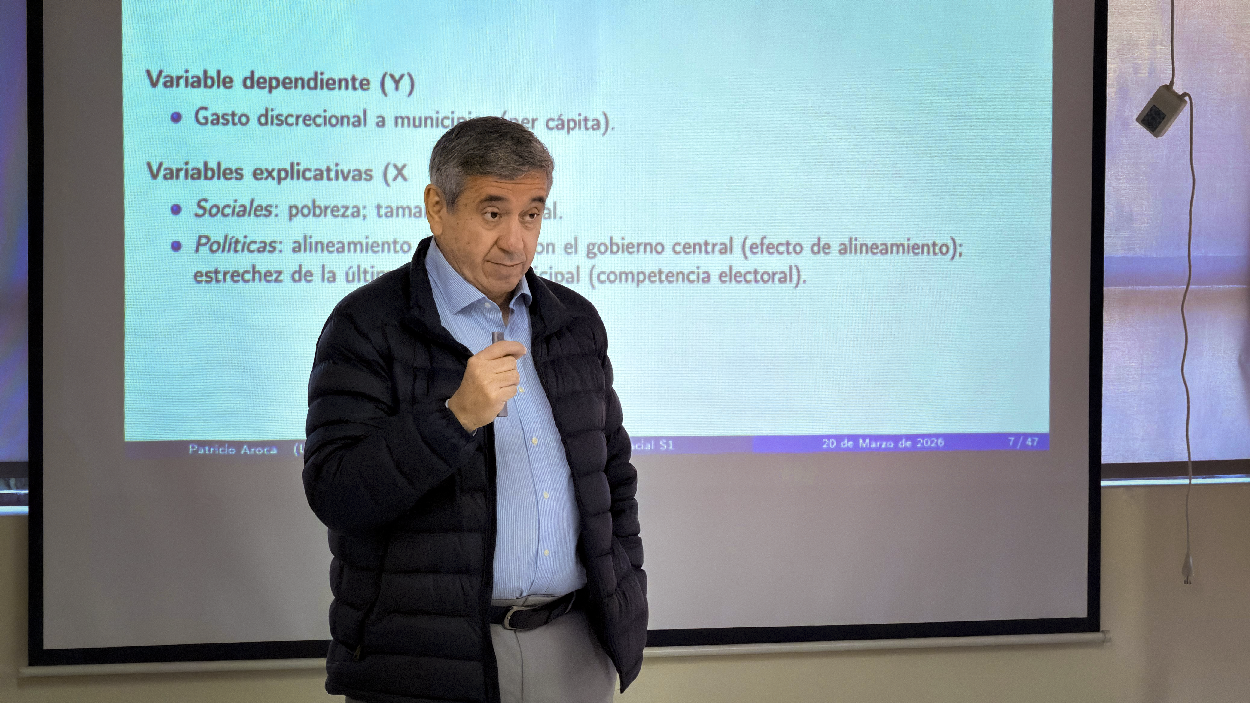 La primera sesión del Workshop, titulada “Fundamentos, Dependencia Espacial y Selección de Modelos”, se centró en cómo integrar la dimensión geográfica en el análisis econométrico, utilizando como caso de estudio la investigación sobre el gasto tipo “Pork Barrel” en Chile.