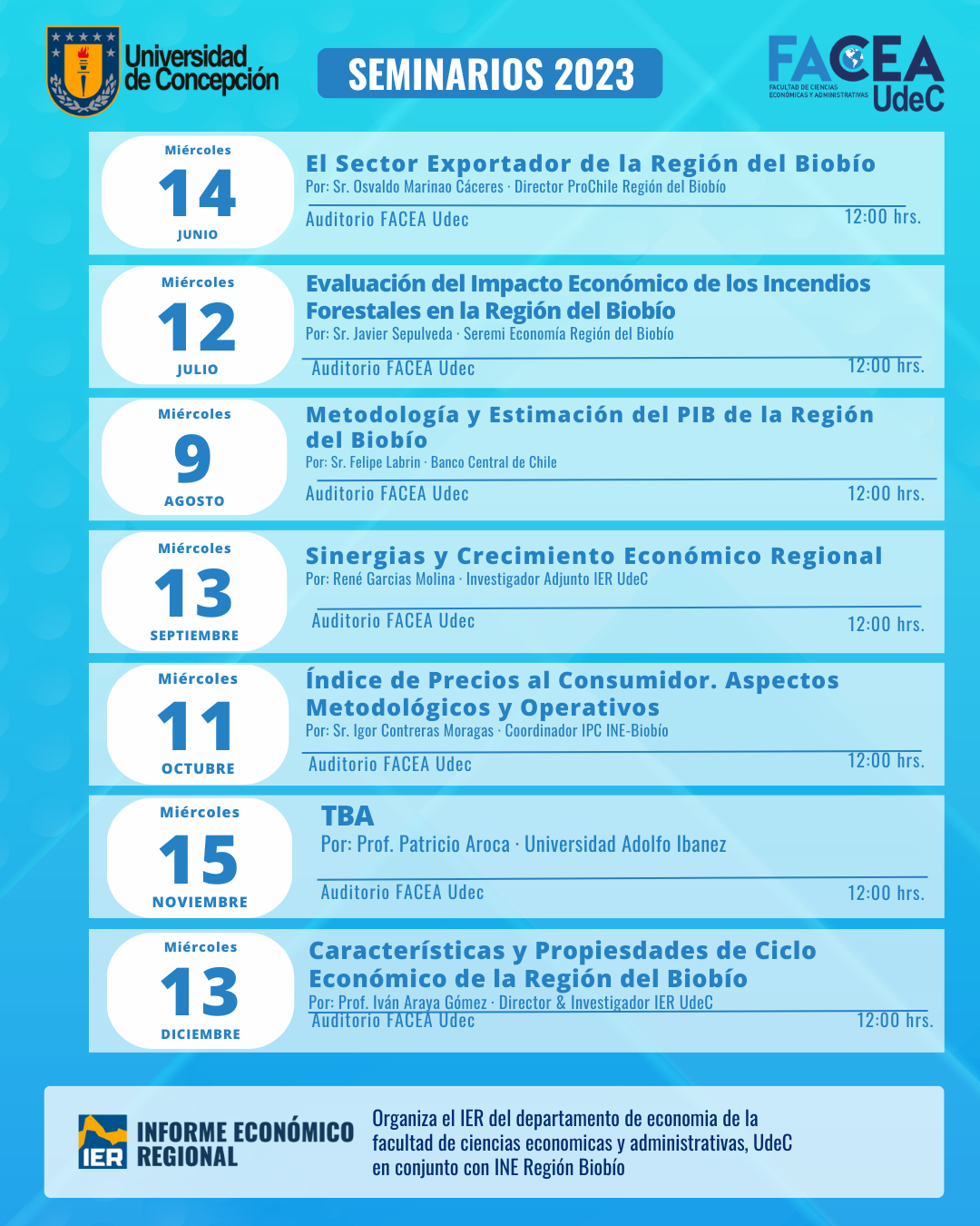Calendarización de seminarios organizados por el Informe Económico Regional en conjunto con INE Región del Biobio