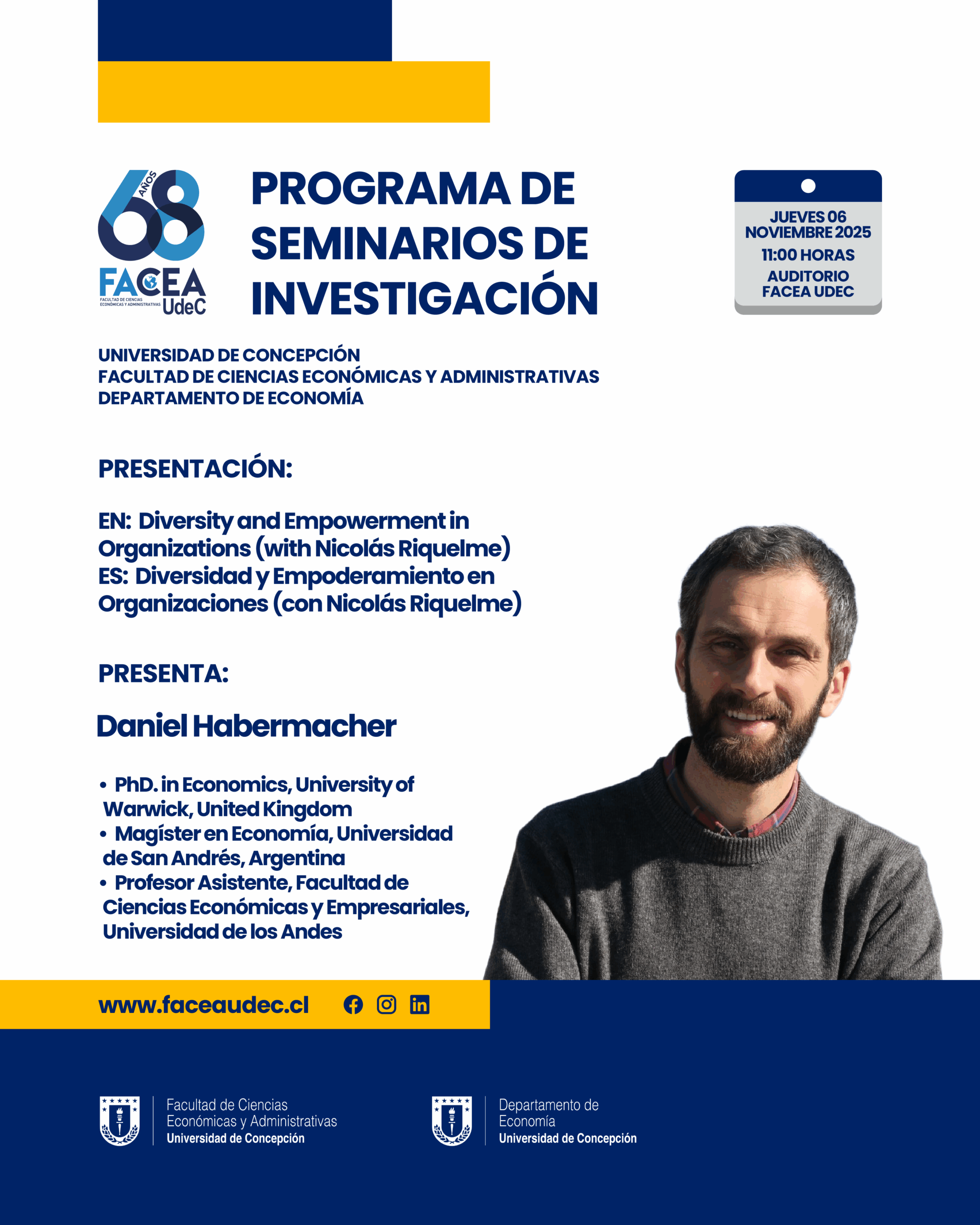 El Departamento de Economía de la Facultad de Ciencias Económicas y Administrativas de la Universidad de Concepción tiene el agrado de invitarle a una nueva presentación del programa de Seminarios de Investigación.